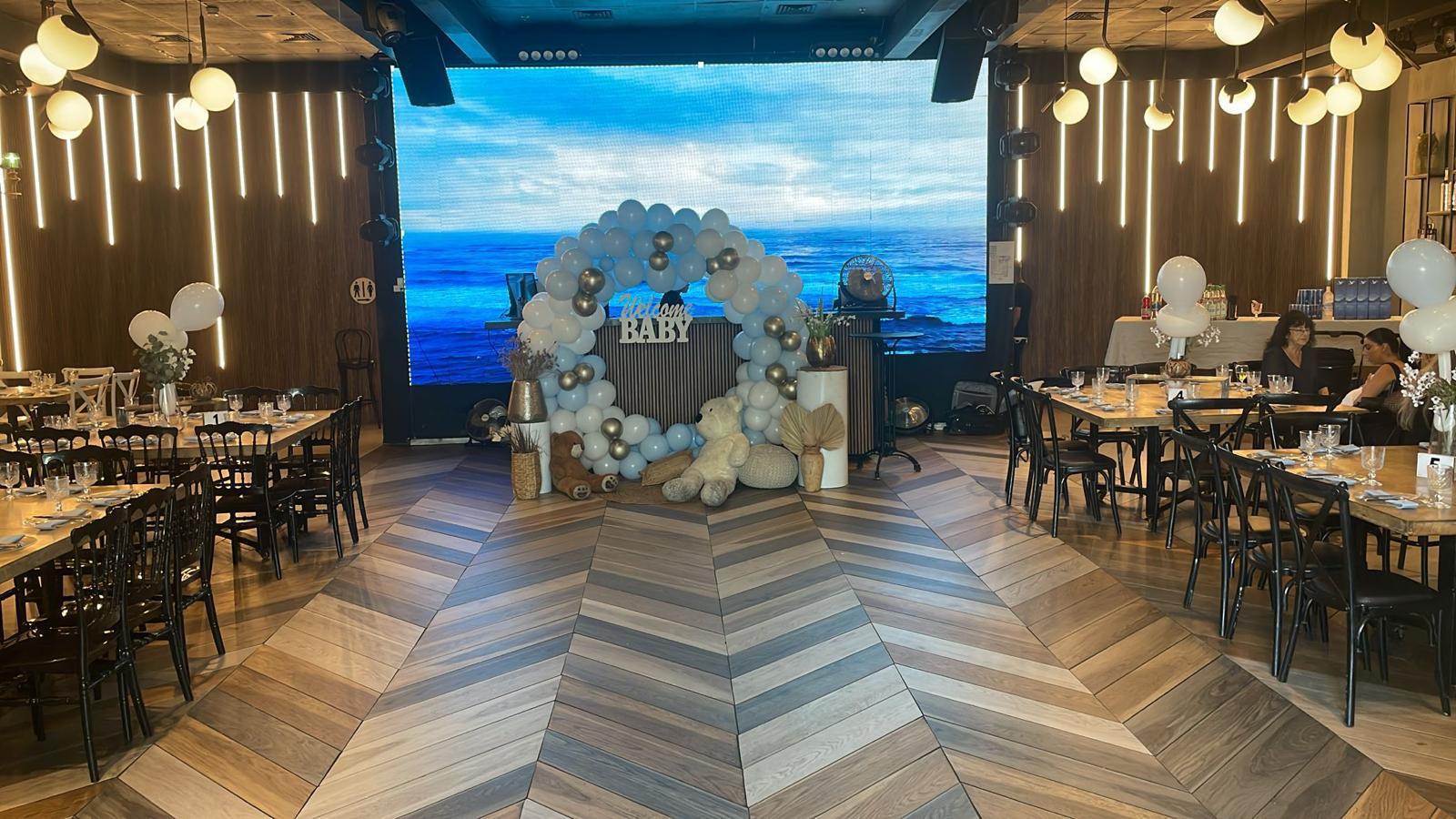 חלל מעוצב בסגנון מודרני המשלב תאורה חכמה ואווירה חמה, המותאם בדיוק לאופי האירוע שלכם.